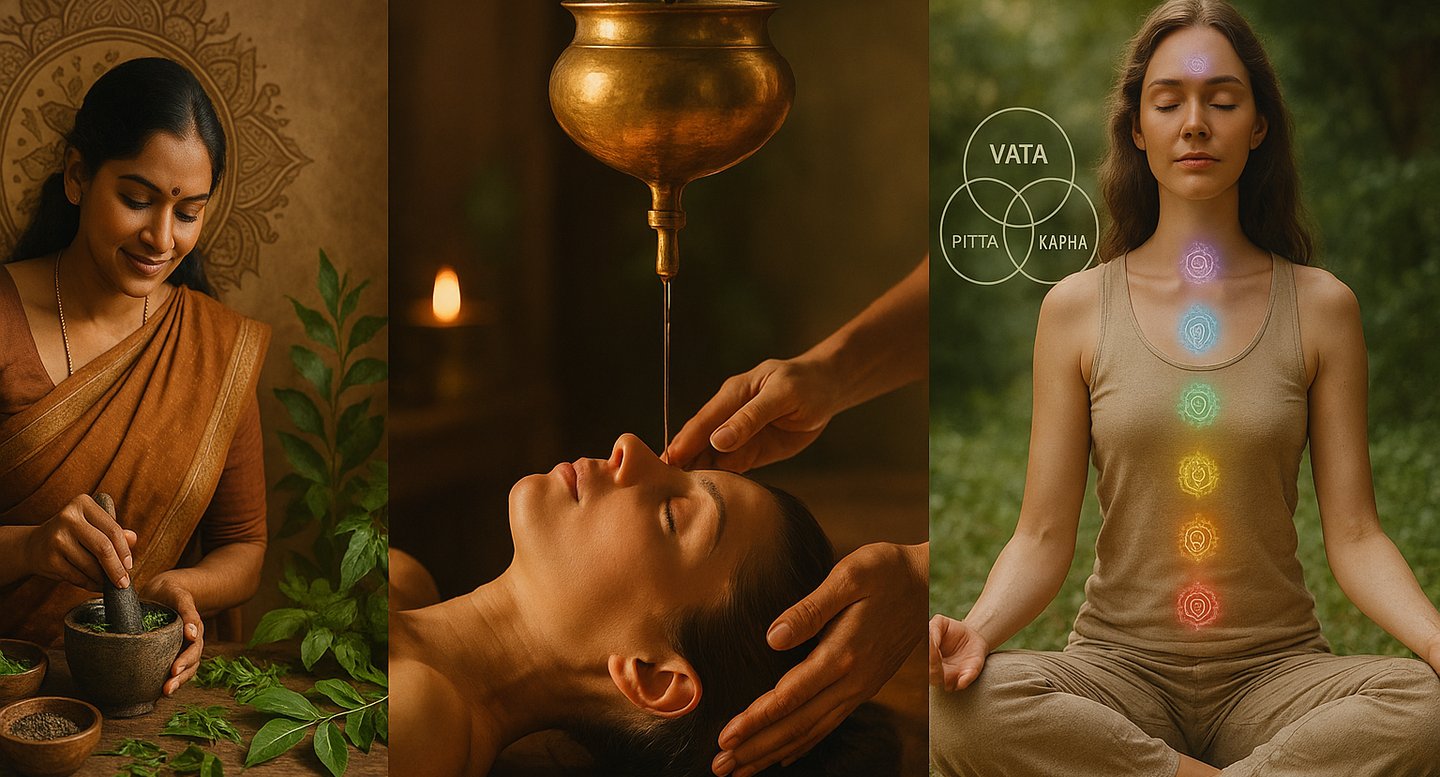 L'Ayurvéda ("science de la vie" en sanskrit) est une médecine traditionnelle indienne vieille de 5000 ans. Elle vise à harmoniser le corps, l'esprit et l'âme en identifiant votre constitution unique (dosha : Vata, Pitta, Kapha) pour adapter votre alimentation, vos routines et vos soins.